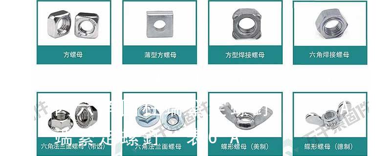 1.六角厚螺母2.六角螺母C級3.六角薄螺母無倒角4.六角薄螺母細牙5.1 型六角螺母6.1 型六角螺母細牙7.2 型六角螺母8.2 型六角螺母細牙9.六角薄螺母10.六角特扁細牙螺母11.六角法蘭面螺母12.六角法蘭面螺母細牙13.球面六角螺母14.精