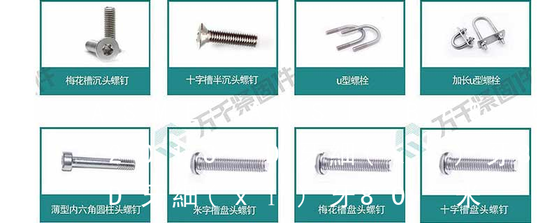 1.機(jī)螺釘 2.自攻螺釘 3.鉆尾螺釘 4.墻板釘 5.纖維板釘 6.木螺釘7.六角木螺釘 8.不脫出螺釘 9.組合螺釘 10.微型螺釘 11.家具螺釘 12.電子螺釘頭型:1.六角頭(hexagon head) 2.六角頭法蘭面(hexagon head with flange) 3. (鐵板牙自攻螺絲) B-2: Plastic Tapping Screw. (塑膠用,自攻螺絲) C: Wooden Screw : 木工螺絲 D: Drywall Screw :水泥墻螺絲 E: Self Drilling Screws鉆尾螺絲(不銹鋼鉆尾螺絲,復(fù)合材料鉆尾螺絲) F:膨脹螺絲,四片膨脹螺絲又