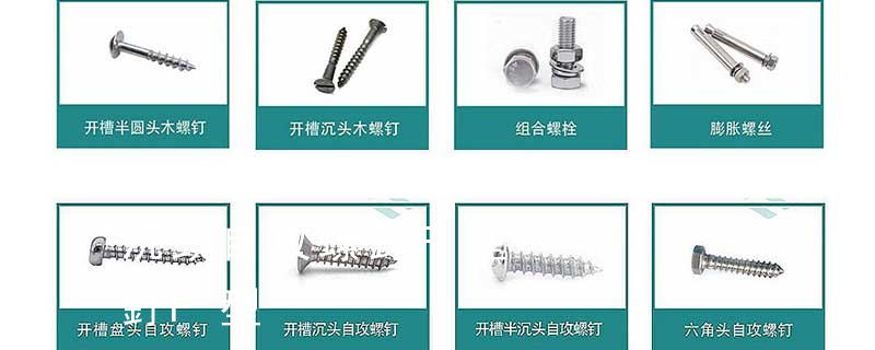 自切自攻螺釘有以下幾種型式:十字槽盤頭自切自攻螺釘,十字槽沉頭自切自攻螺釘。十字槽半沉頭自切自攻螺釘,六角頭自切自攻螺釘。3、自擠自攻螺釘(自攻鎖緊螺釘)自擠自攻螺釘的螺紋一般為機螺紋,很少采用自攻螺紋。在扳擰 (塑膠用,自攻螺絲) C: Wooden Screw : 木工螺絲 D: Drywall Screw :水泥墻螺絲 E: Self Drilling Screws鉆尾螺絲(不銹鋼鉆尾螺絲,復合材料鉆尾螺絲) F:膨脹螺絲,四片膨脹螺絲又名:四片壁虎。 膨脹螺栓的等級分為:45、50、60、