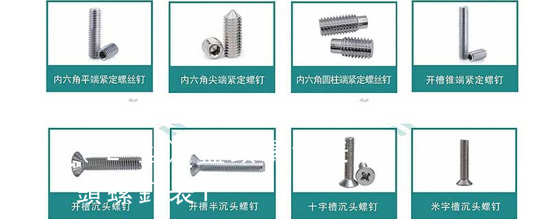 1)開槽普通螺釘多用于較小零件的連接。它有盤頭螺釘、圓柱頭螺釘、半沉頭螺釘和沉頭螺釘。盤頭螺釘和圓柱頭螺釘的釘頭強度較高,瑁在普通的部件連接上;半沉頭螺釘的頭部呈弧形,安裝后它的頂端略外露,且美觀光滑,一般