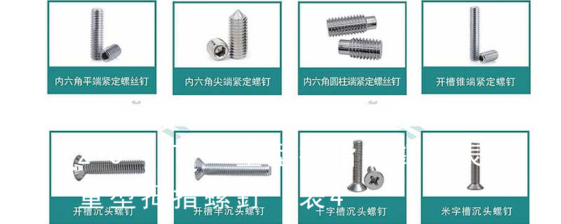 1.機螺釘 2.自攻螺釘 3.鉆尾螺釘 4.墻板釘 5.纖維板釘 6.木螺釘7.六角木螺釘 8.不脫出螺釘 9.組合螺釘 10.微型螺釘 11.家具螺釘 12.電子螺釘 頭型 :1.六角頭(hexagon head) 2.六角頭法蘭面(hexagon head