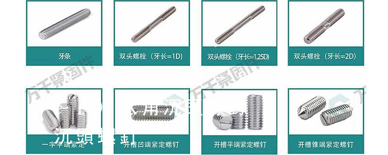 螺栓有:1、方頭螺栓,2、半圓頭方頸螺栓,3、十字槽盤頭螺釘,4、內(nèi)六角沉頭螺釘,5、方螺母C級,6、蝶形螺母,7、六角頭螺栓,8、十字槽盤頭自攻螺釘。大小有M18、M6、M8、M16、M10、M12、M14、M20等型號。通常用